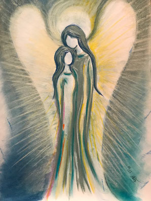 Malerei ist Ausdruck der Seele. Seit ein paar Jahren empfange ich Schutzengel-Bilder, die ich mit Aquarellfarben oder Pastellkreide für meine Klienten male.